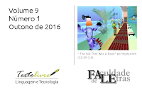 A revista Texto Livre: Linguagem e Tecnologia acaba de publicar o segundo número do volume 9, 2016. A revista agora também tem uma página no Facebook, é possível acessar e curtir a página da revista Texto Livre no Facebook para receber notícias sobre publicação e chamadas.Para quem tiver interesse em enviar artigos para publicação, a revista recebe em fluxo contínuo submissões de textos que tratem da relação entre linguagem, educação e tecnologias (mais detalhes na página oficial da revista). Os artigos estão muito interessantes, vale a pena navegar pelo sumário e conhecer os textos.